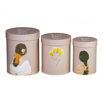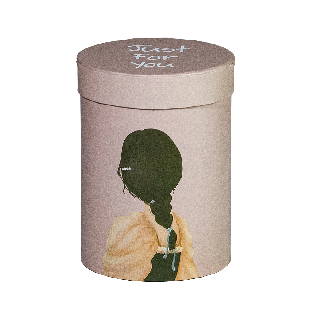 Описание Коробка подарочная цилиндр бежевый с изображением девочки S
