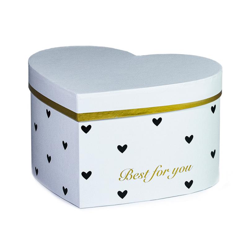 Описание Коробка подарочная в форме сердца белая с черными сердцами L