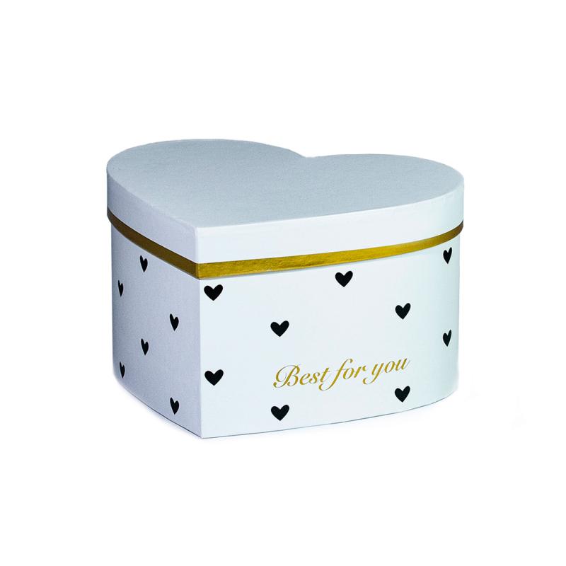 Описание Коробка подарочная в форме сердца белая с черными сердцами M