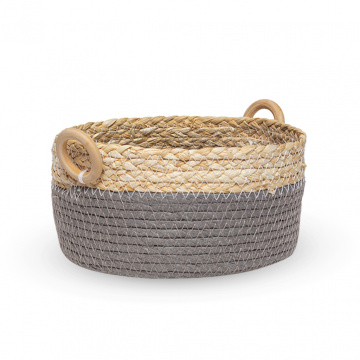 Описание Корзинка для хранения плетеная круглая бежево-серая M 20см