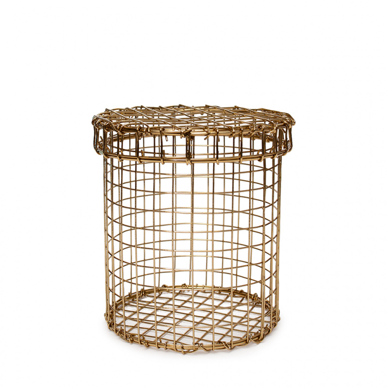 Описание Корзина золотая органайзер из металла с крышкой S 14х14х15см