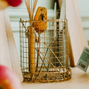 Корзина золотая органайзер из металла с крышкой М 22х22х17см