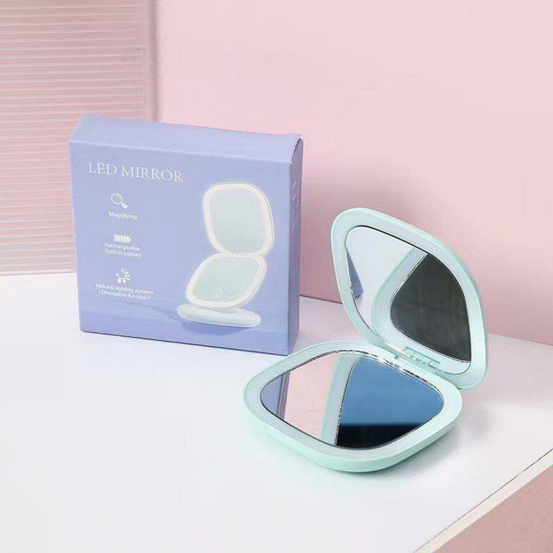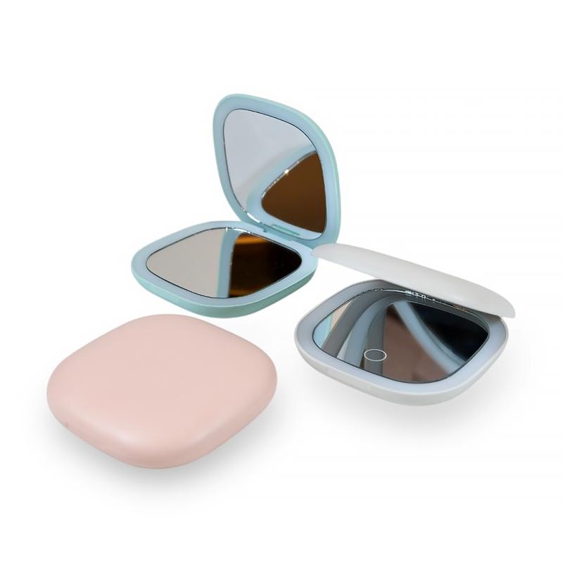 Описание Карманное косметическое зеркало с увеличением и подсветкой 9,1х9 см 3 вида