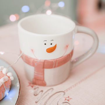Описание Кружка Сніговик біл / рожева НР 13.5*9.3*9.5 см