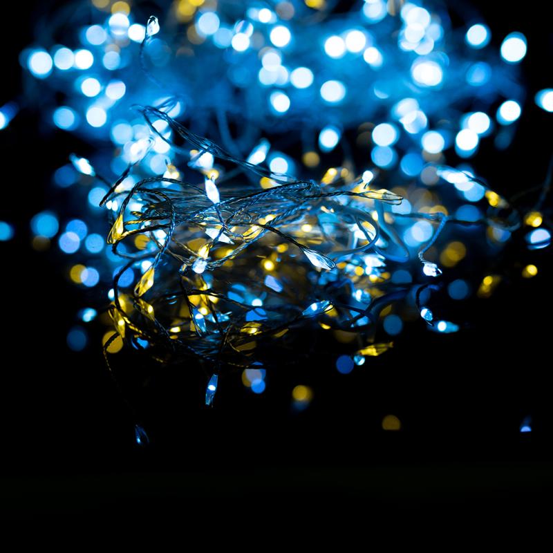 Ви тримаєте унікальну гірлянду-сороконіжку, що складається з 200 мікро LED-ламп. Гнучкість дроту дозволить вам надати гірлянді бажаної форми, не обмежуючи власну фантазію. Пухнаста 5 метрова гірлянда, допоможе створити казковий зоряний ефект, розмістивши її над підвіконні, на камінній полиці або ж прикрашаючи новорічну ялинку. Адаптер в рiзноманiтними функцiями перемикання свiтла надасть можливостi вибрати бажаний ефект мерехтiння.