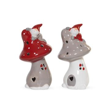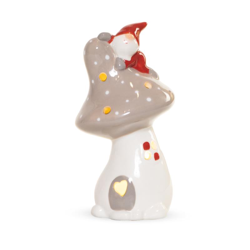 Подсвечник керамика Гномик на грибочке белый 21х11,3х12 см