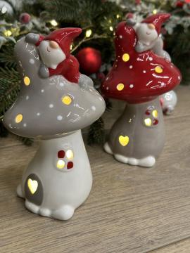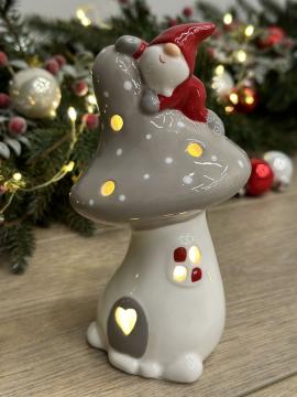 Декоративный LED ночник Гномик на грибочке красный 15,7х8,6 см
