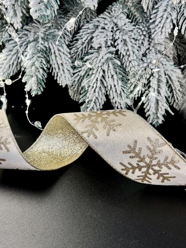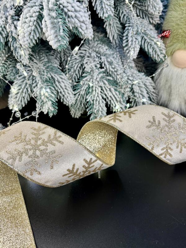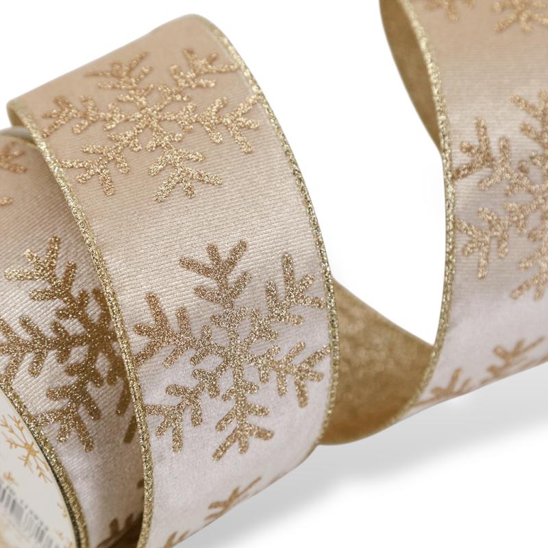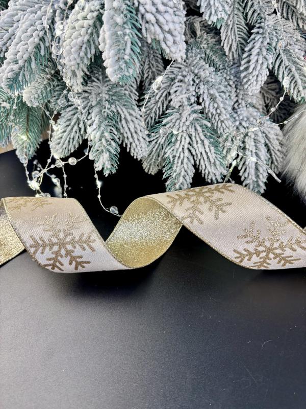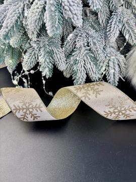 Создайте атмосферу уюта и зимней магии — бархатная лента «Снежинка» в бежевом цвете добавит вашим украшениям нежности и станет стильным элементом новогоднего декора.