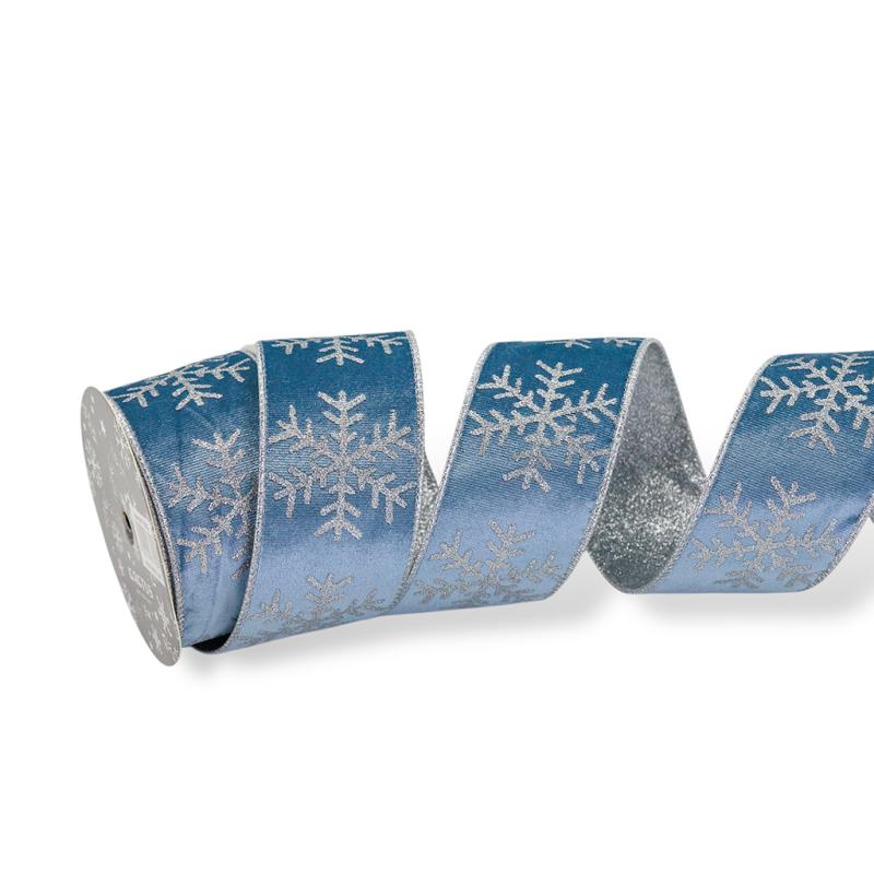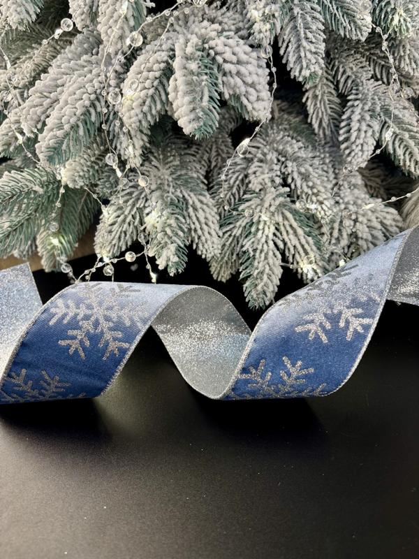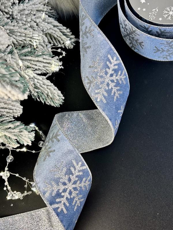 Добавьте в свой декор сияние зимы — зимняя бархатная лента «Снежинка» в синем цвете подчеркнёт атмосферу Нового года и сделает ваши украшения по-настоящему волшебными.