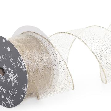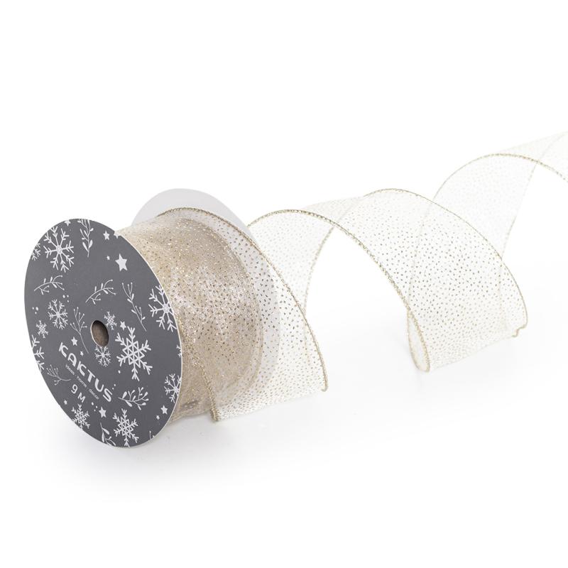 Лента новогодняя декоративная органза глиттер золото 6,3 х 9,15 м