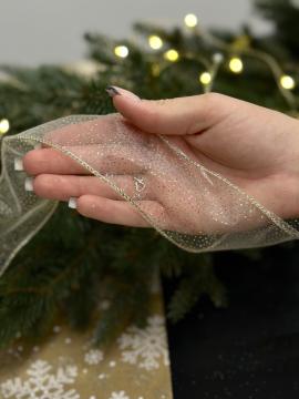 Описание Лента новогодняя декоративная органза глиттер золото 6,3 х 9,15 м