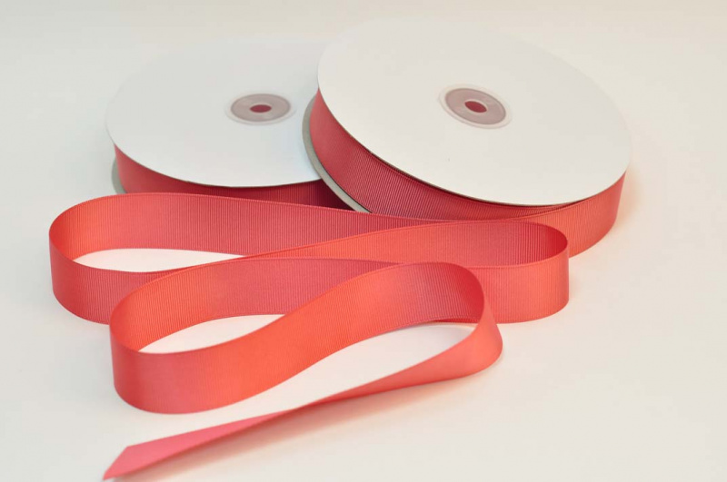Лента-тесьма рифленая (Красно-коралловая) Материал: атлас. Длина: 45 м. Ширина: 2.5 см.