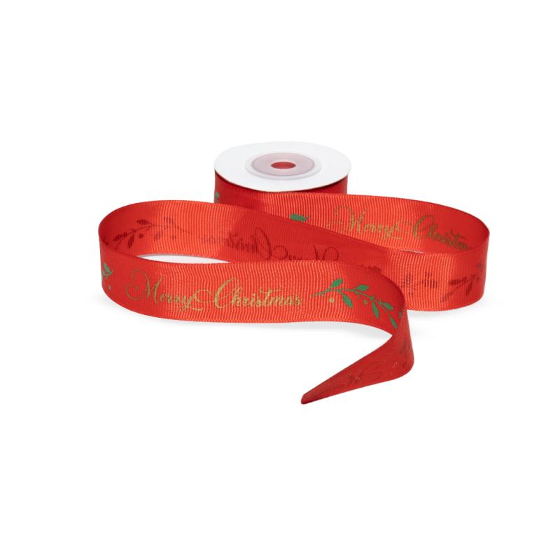 Лента тесьма красного цвета с Новогоднм принтом. Идеальное решение для упаковки подарков.