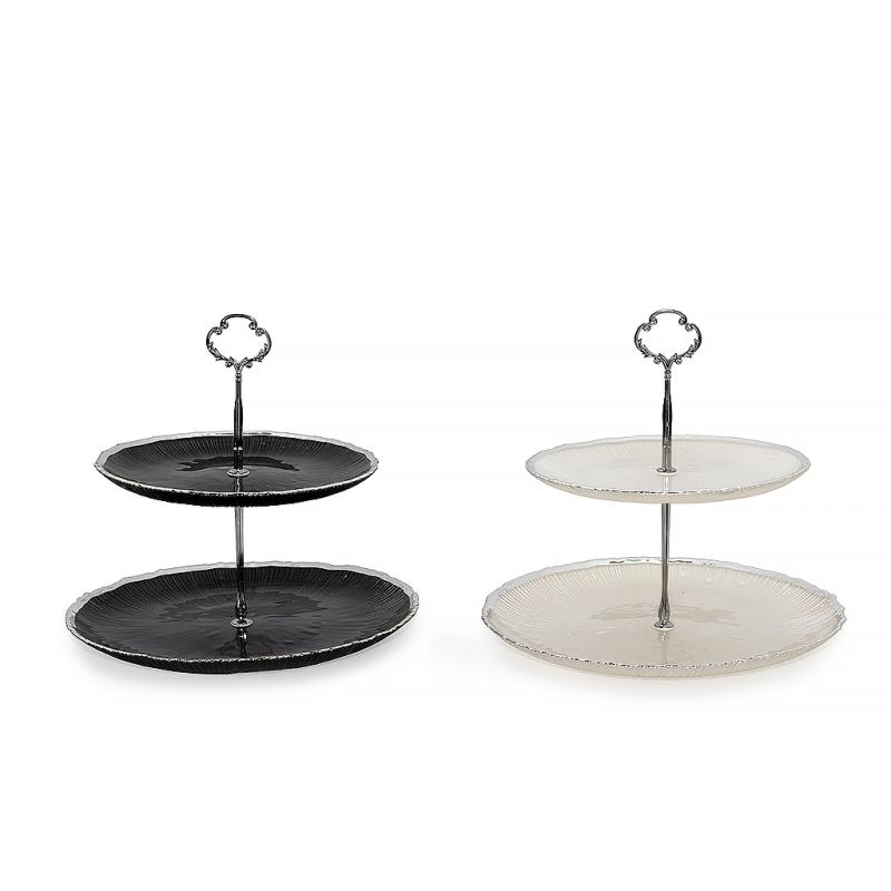 Менажница стеклянная Черный жемчуг 2 яруса 25см