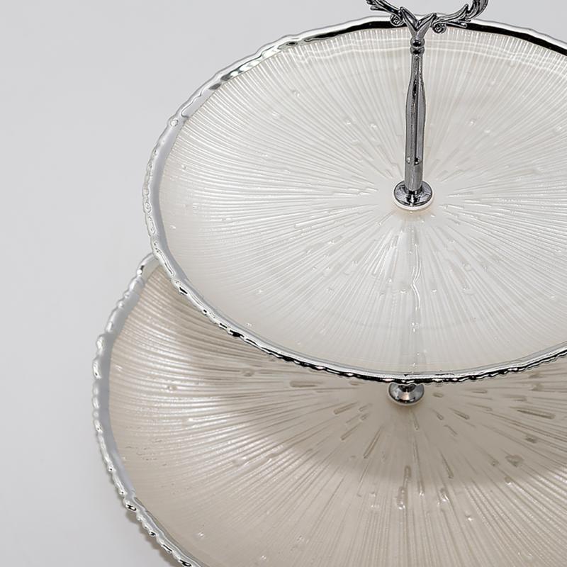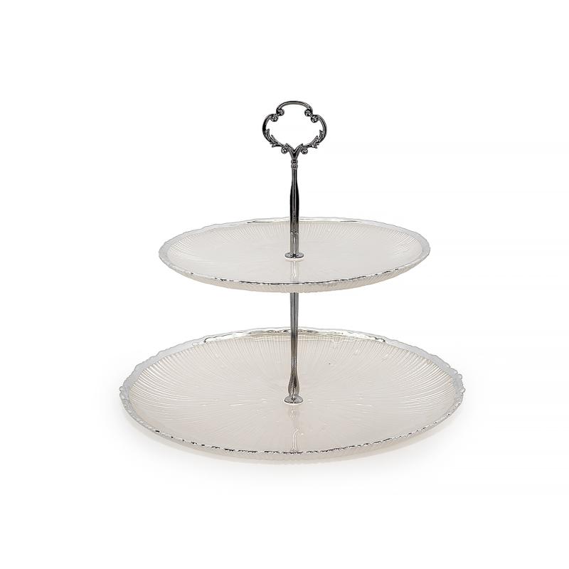 Описание Менажница стеклянная Белый жемчуг 2 яруса 25см