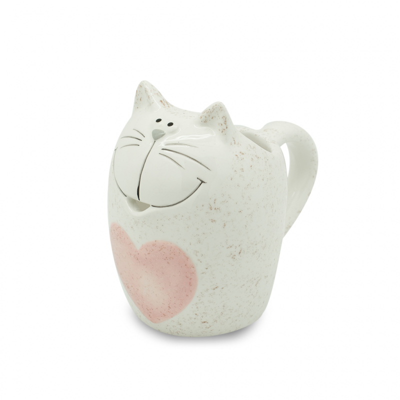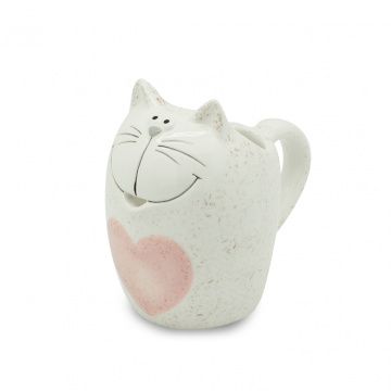 Описание Молочник білий Котик з серцем рож. 12.9*8.2*11.6
