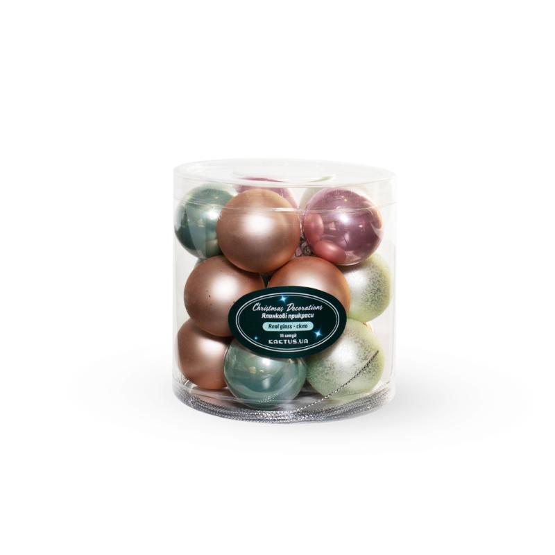 Описание Набор елочных шариков 3.5см салатово-розовый 15шт