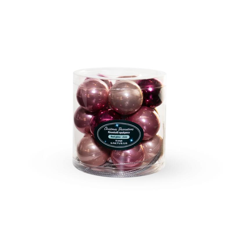 Описание Набор стеклянных елочных шариков 3.5см темно-розовый микс 15шт
