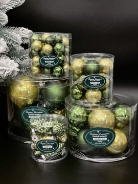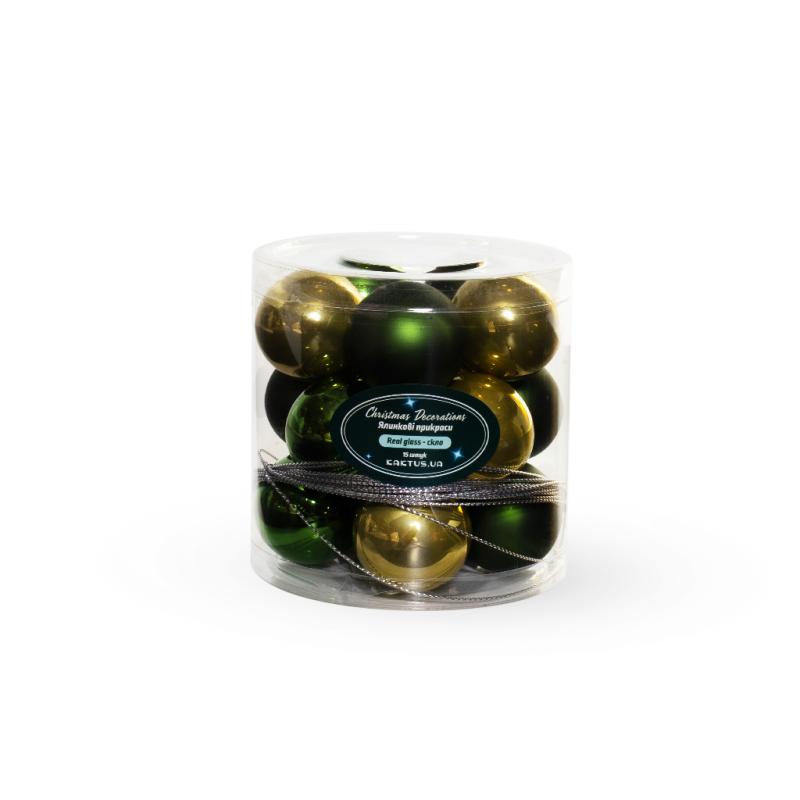 Описание Набор стеклянных елочных шариков 3.5см зеленый микс 15шт