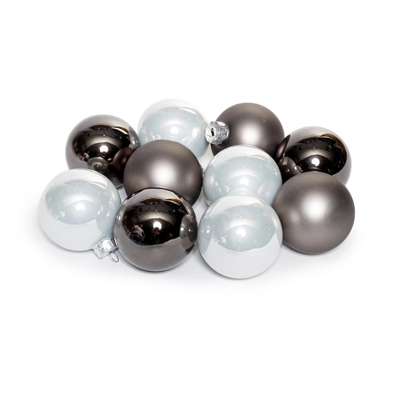 Описание Набор елочных шаров 6см темно-серый микс 10шт