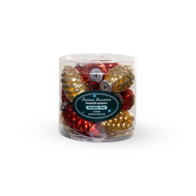 Описание Набор елочных игрушек шишки 5см красно-золотой 12шт