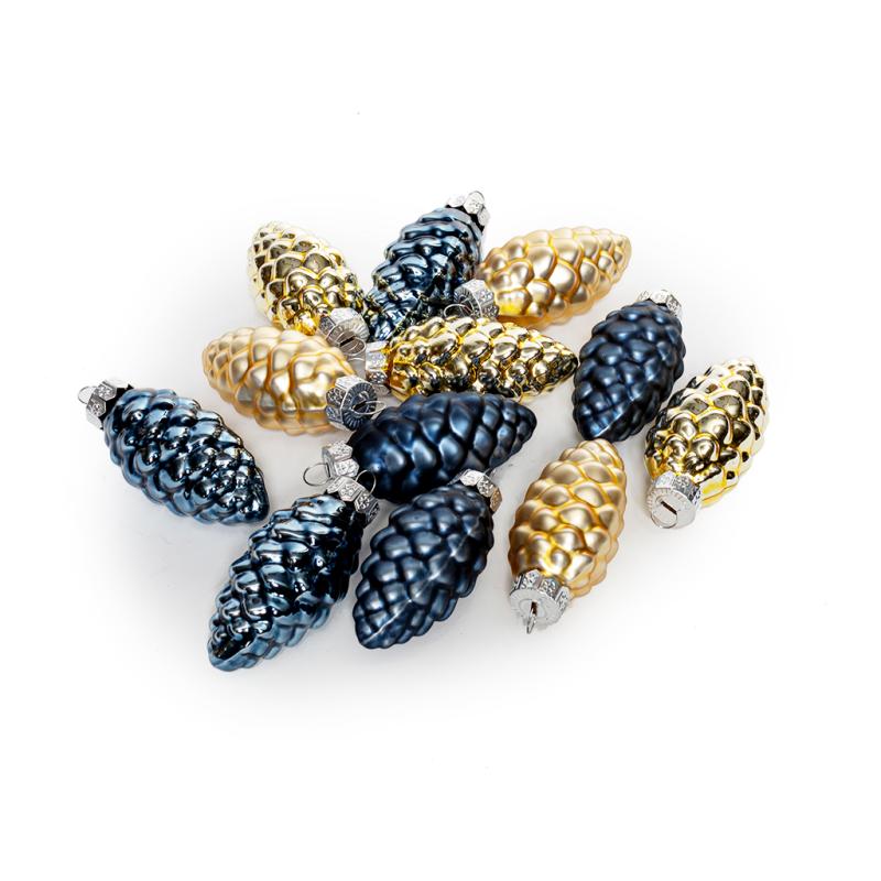 Описание Набор елочных игрушек Шишки 5см сине-золотой 12шт