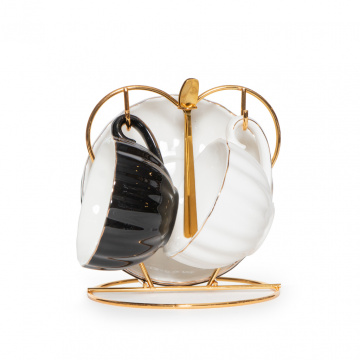Описание Набор 2 Чашки с блюдцами Black and White на подставке сердце