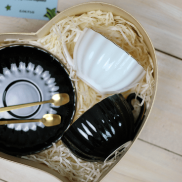 Набор 2 Чашки с блюдцами Black and White на подставке сердце в магазине Кактус по лучшей цене. Большой ассортимент товаров в категории Чашки в подарочных коробках с доставкой по Украине.