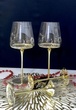 Набор бокалов для вина Gold Plating хороший ход, чтобы нестандартно оформить сервировку стола. Новшество дизайна – это ножка, покрытая гальваническим золотым стеклом с эффектом зеркала. Форма и объем бокала на 650 мл идеальны для эффектной подачи белых и красных вин, алкогольных коктейлей. Фужеры правильно раскроют ингредиенты и сложный букет напитков. Как праздничный элемент сервировки посуда получит всеобщее восхищение у гостей на свадьбе, вечеринке, торжественном мероприятии.
