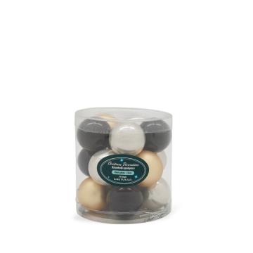 Описание Набор елочных игрушек Шар стекло 3,5см 15шт черный, золотой, молочный