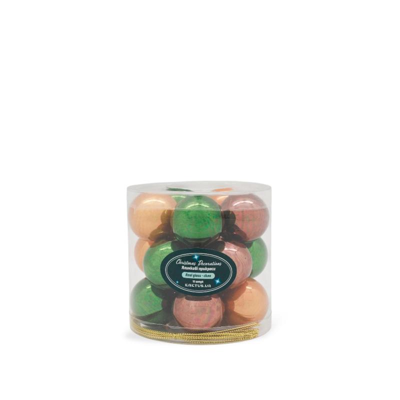 Описание Набор елочных игрушек Шар стекло 3,5см 15шт зеленый, коричневый