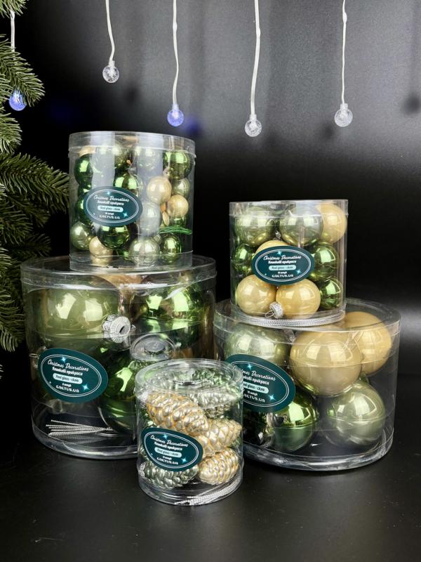 Описание Набор елочных игрушек Шар стекло 3,5см 15шт зеленый, оливка, песочный