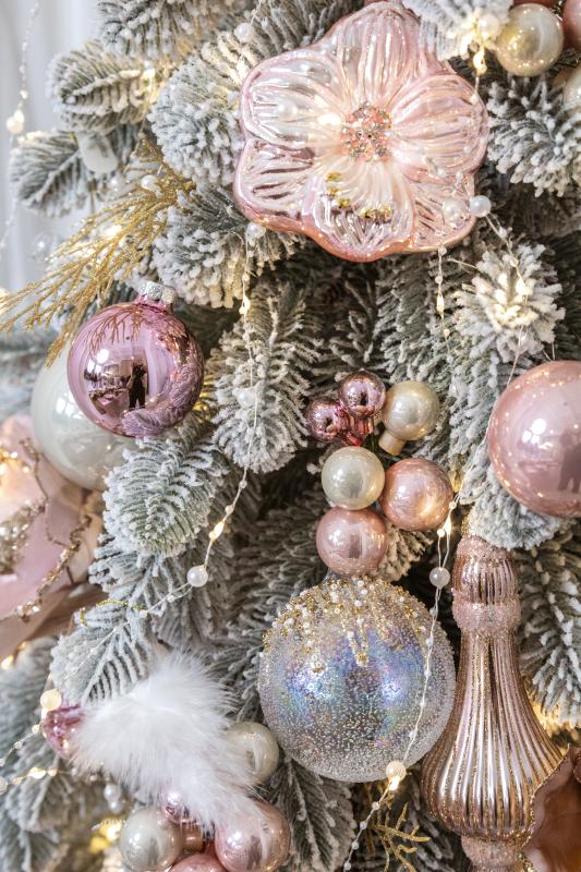 Набор елочных игрушек Шар стекло 8см 6шт розовый, молочный