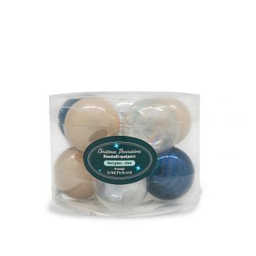 Описание Набор елочных игрушек Шар стекло 6см 10шт прозрачный, синий, кремовый