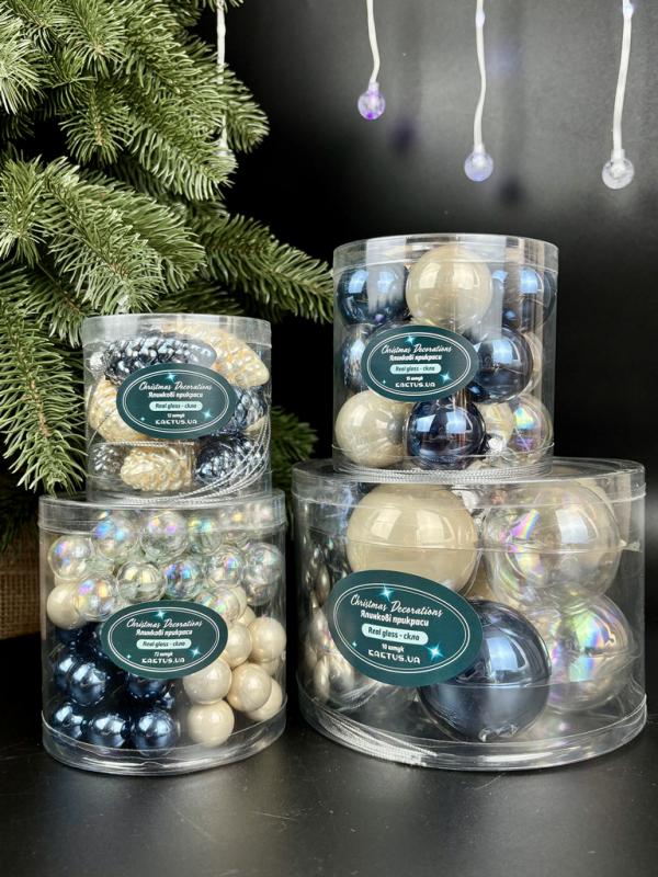Набор елочных игрушек Шар стекло 3,5см 15шт прозрачный, синий, кремовый