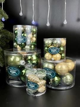 Набор елочных игрушек Шар стекло 3,5см 15шт зеленый, оливка, песочный