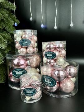 Набор елочных игрушек Шар стекло 3,5см 15шт розовый, молочный