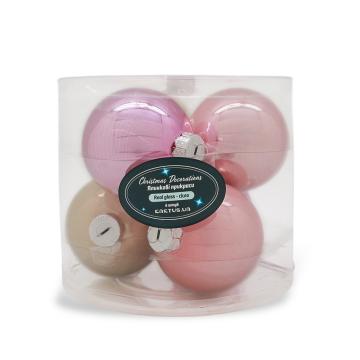 Описание Набор елочных игрушек Шар стекло 8см 6шт розовый, молочный