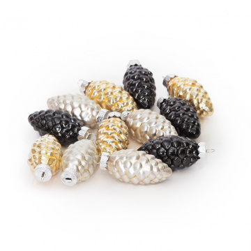Описание Набор шаров Шишка 5 см черно-бело-золотистый 12 шт
