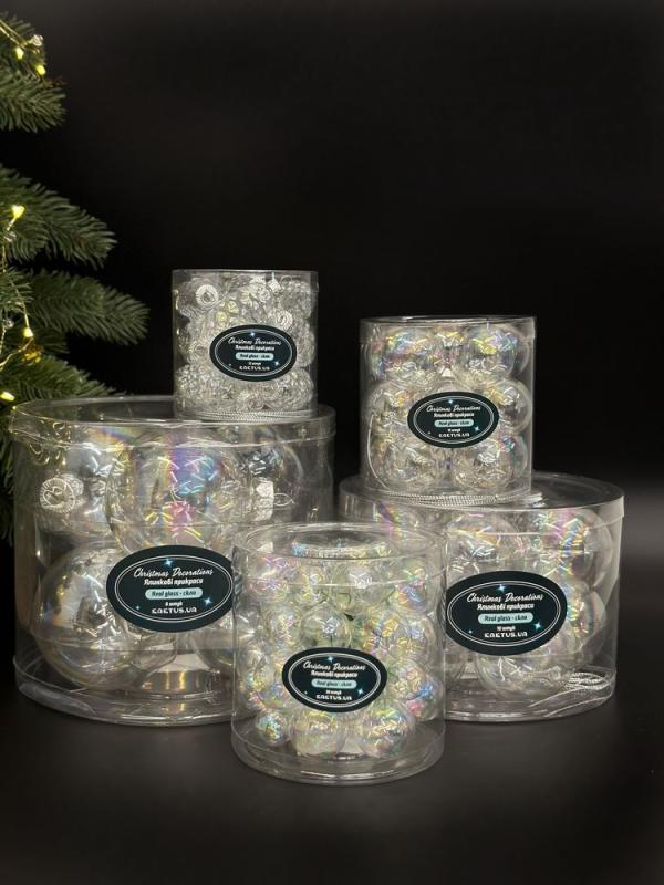 Набор елочных игрушек Шар стекло 8см 6шт прозрачный радужный