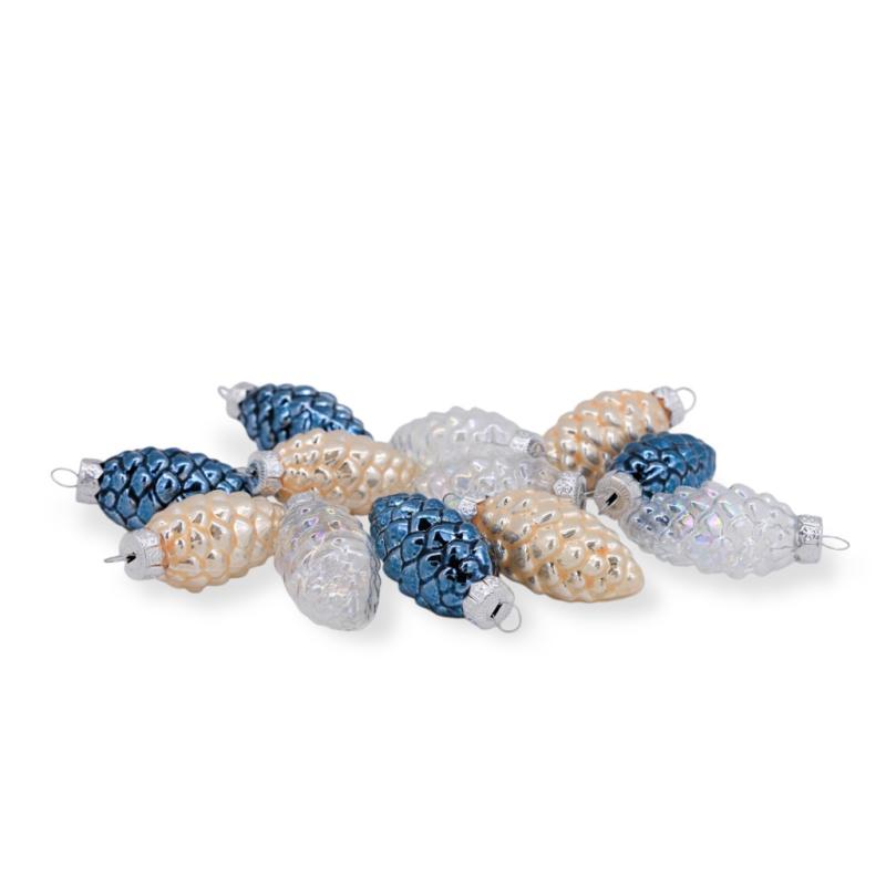 Описание Набор елочных игрушек Шишки 5см 12шт прозрачный, синий, кремовый