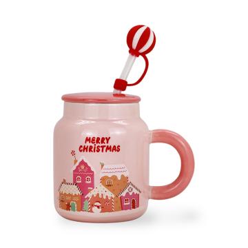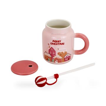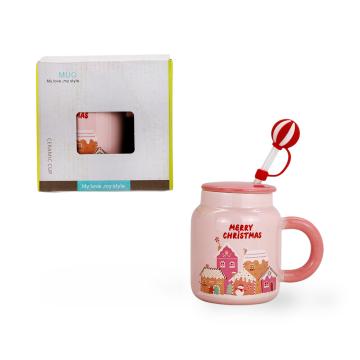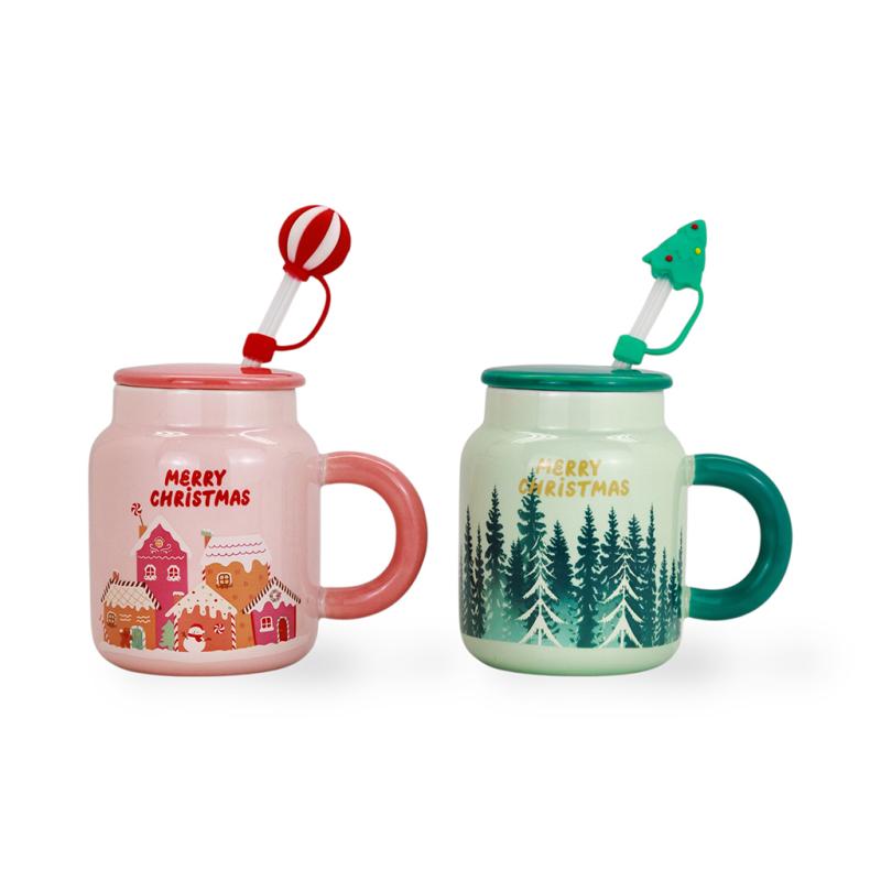 Описание Кружка керамика с крышкой и трубочкой Merry Christmas 2 вида