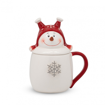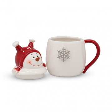 Описание НГ Чашка с крышкой Снеговик бело-красный 13.5х10.5