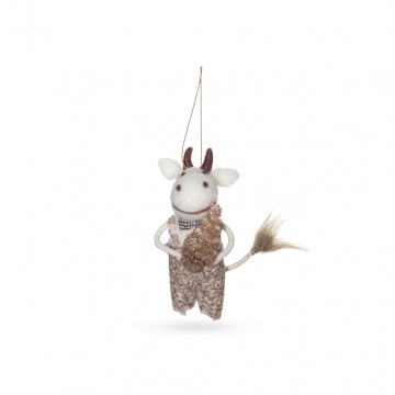 Описание НГ Фигурка Бычок белая шерсть с елочкой 6х4х12.5 см