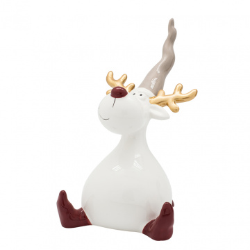 Описание НГ Фигурка керамика Олень в колпаке белый 14.3х12х20.1 см