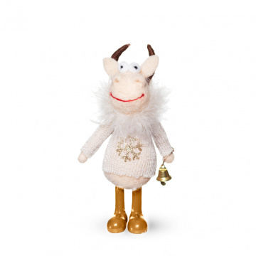 Описание НГ Фигурка корова белая шерсть с колокольчиком 9х7х15см