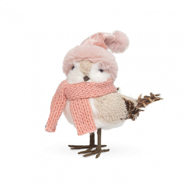 Описание НГ Фигурка птичка белая в шапке розовой 17*9*18 см