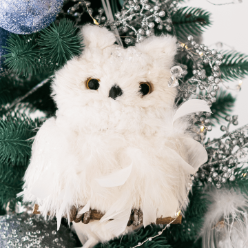 Удержать на миг волшебство с белой птицей в руке. Фигурка совы настроит интерьер на манер новогодней сказки. Настенная подвеска звучит ярким акцентом для интерьера дома. Живой облик совы притягателен за счет объемных перышек и меха. Птица эффектно покачивается на карнизе окна или входной двери. Декор изящно оформит праздник, витрину и пространство дома. Мотивы зимнего леса в интерьере дома пользуются большим успехом. Дополните сюжет сказки популярными лесными персонажами: совушками, лосями, птицами и даже снеговиками. В коллекцию новогодних фигурок вложен ручной труд и сердечное тепло. Существенно выделяются качеством элементы натурального текстиля с богатой фактурой. Впустите белую сову для эмоций и восторга. Сохраните фигурку птицы как новогодний талисман. Настройтесь на встречу с волшебством.