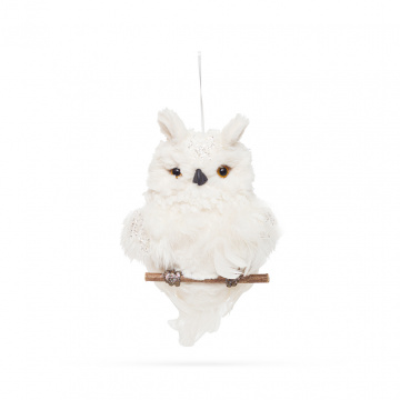 Описание НГ Фигурка сова мех / перо белая, 19х30 х 5 см