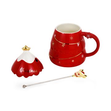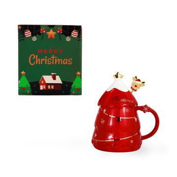 Описание Кружка керамика с крышкой и ложкой Ёлочка 4 вида